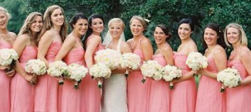 - Для оформления свадебного платья и наряда её свидетельниц. В зависимости от цветовой гаммы, переход может быть от светлого на плечах и яркому на подоле. Естественно, что невеста должа максимально выделяться среди окружающих ее подруг.